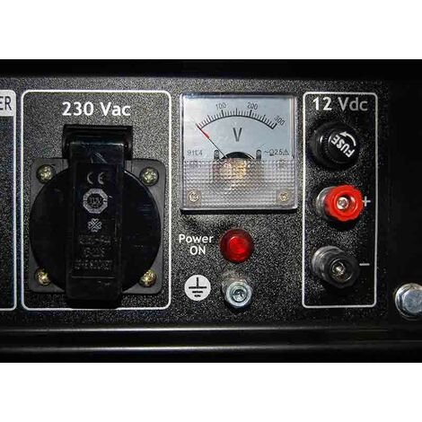750 Watt Générateur électrique (2 CV Moteur à essence 2 temps, Refroidi à lair, 1x 230 V, 1x 12 V, Voltmètre) Groupe électrogène