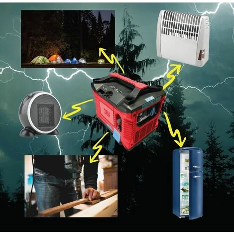 Groupe Electrogene Inverter – Pour vous accompagner en camping / caravaning – Comme générateur de secours, petit bureau, magasin – Pour alimenter votre stand, en marche de nuit – Pour le petit bricolage – Pour eclairer vos soirees à l’exterieur —-Technologie inverter compatible appareils electroniques – Moteur 4 temps 53 cc 2 HP max – Fonctionne au SP95E10 et SP98 – Autonomie : 6h à 2/3 de charge – Protection contre les surcharges – Systeme d’alerte niveau d’huile – Fonction de ralenti pour économie de carburant – Puissance max (5 minutes) : 1200 Watts – Puissance continue (COP) : 1000 Watts – Tension : AC 230V / 50 Hz – Niveau sonore LWA à 4 m : 95 db(A) – Capacité du réservoir : 4,5 Litres – Sortie : prise NF 230V AC – Poids brut : 15 Kg – Dimensions du carton : 40 x 28 x 40 cm – Norme CE – SAV dans nos ateliers du centre de la France – LIVRAISON GRATUITE EN France Métropolitaine, Livré sans huile ni carburant; Porduit neuf; SAV en France; Garantie 1 an ou 1000 heures de travail (La batterie n’est pas garantie),