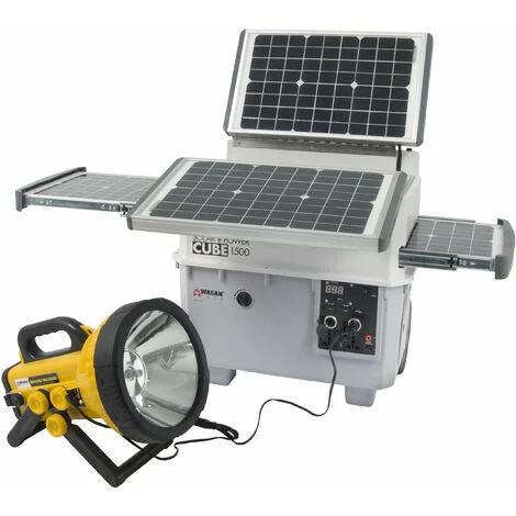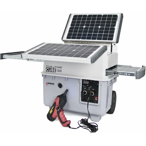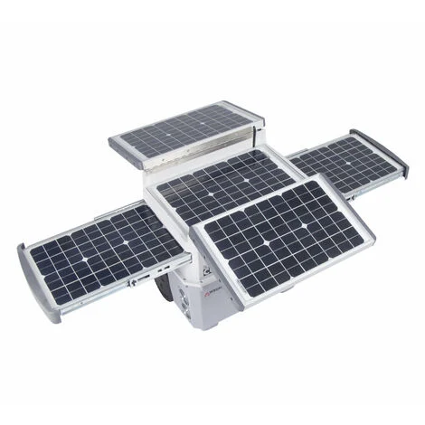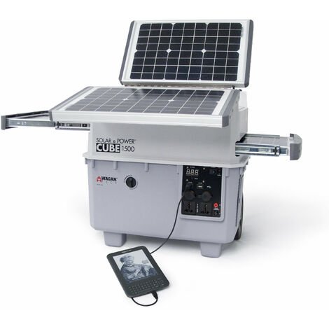 GROUPE ELECTROGENE SOLAIRE 1500 W Source d’énergie plus économique et plus écologique – Groupe électrogène solaire entièrement fonctionnel de type valise, ce modèle séduit par sa praticité et sa facilité d’utilisation et de transport – Le dispositif se compose de 5 panneaux solaires pliables, d’un tableau de commande digital et de 2 roues, Robuste et fiable, ce matériel fournit une puissance de 1500 W, Il s’alimente facilement par le biais des panneaux solaires intégrés ou par une prise de 230V, Vous pouvez y branches divers appareils domestiques: smartphone, TV, éclairage, etc, Dimensions: 54*54*39 cm – Poids: 53 kg – Garantie 1 an –