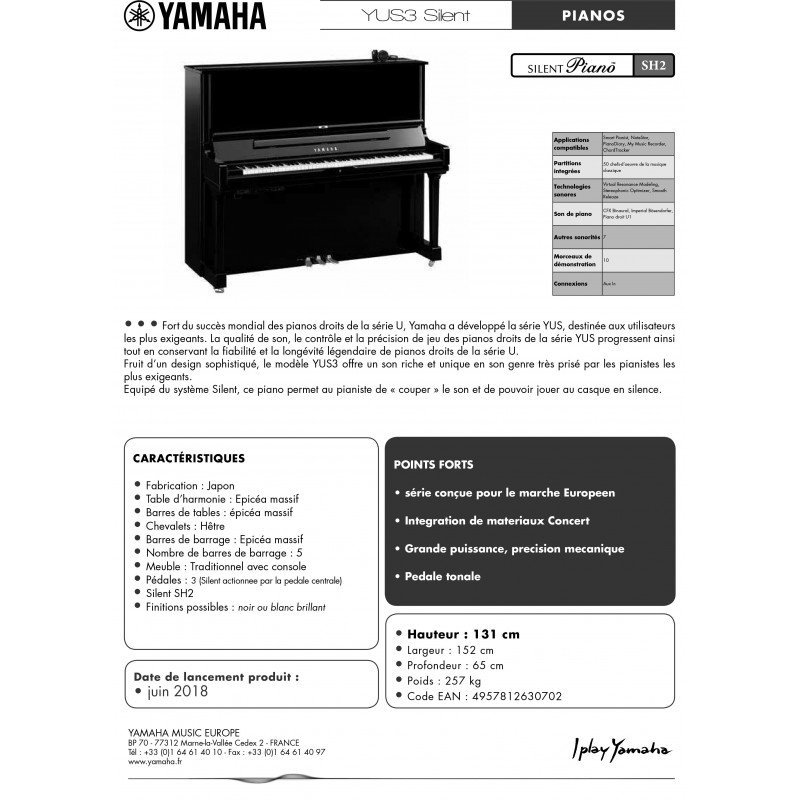 Ce piano existe également sans l’option silent Yamaha : Voir Yamaha YUS-3